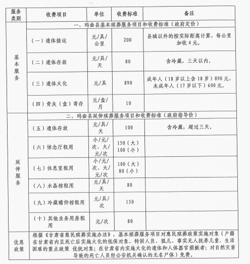 关于玛曲县殡葬服务机构收费项目网络集中的公示